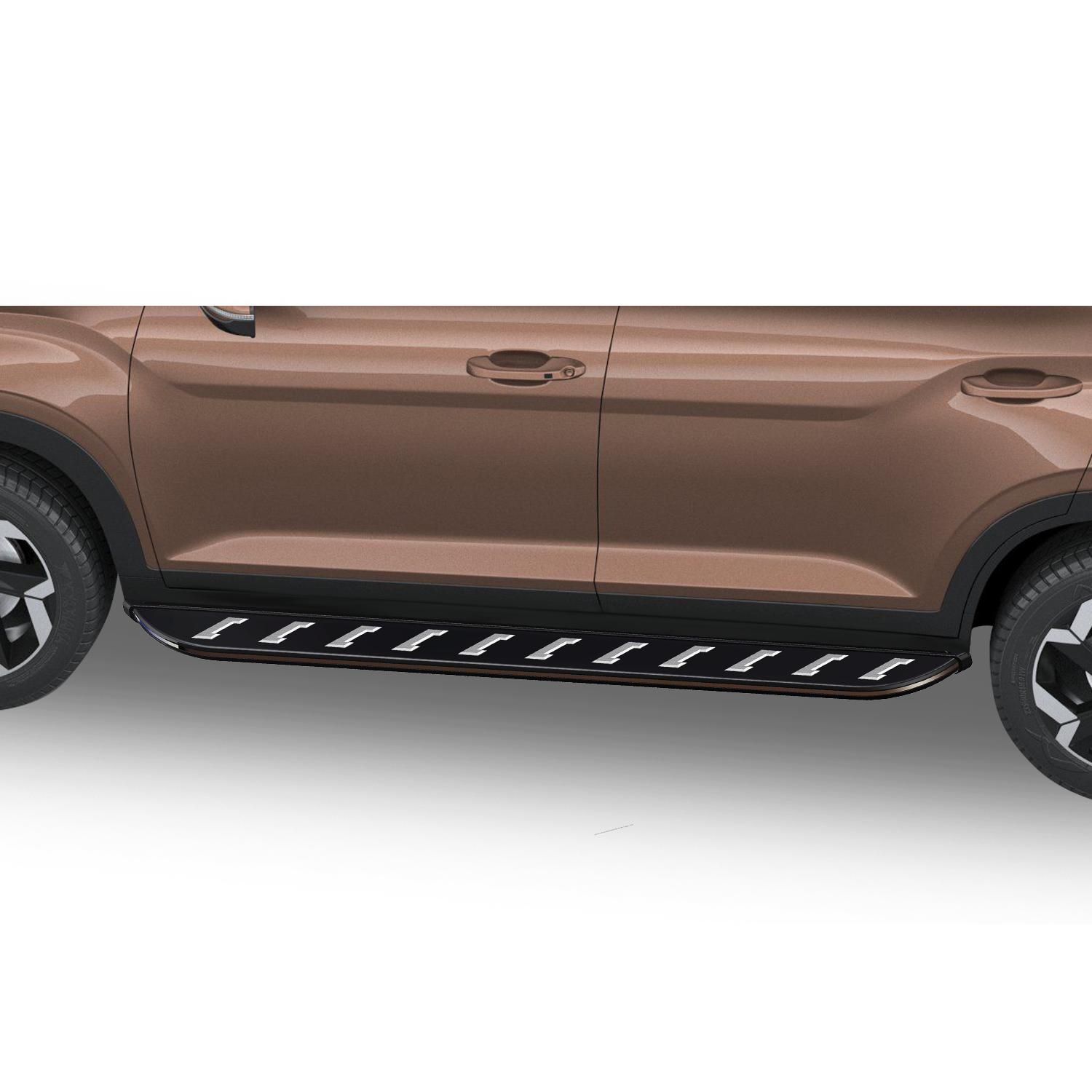 - Model Name: (F) MK 11075 (B) MK 11051 – Tailor-made for SUVs with a seamless integration for a factory-fitted appearance. Croma Pattern Step Surface – Elegant chrome-accented design with anti-slip texture ensures both style and secure footing. Durable Dual-Material Build – Constructed with an aluminum frame and tough ABS top for enhanced strength and stability. Chrome + Matte Black Finish – A premium combination of chrome detailing with matte black base for a modern, upscale look. No-Drill Fitment – Includes all required hardware and mounts directly using bolt-on installation.