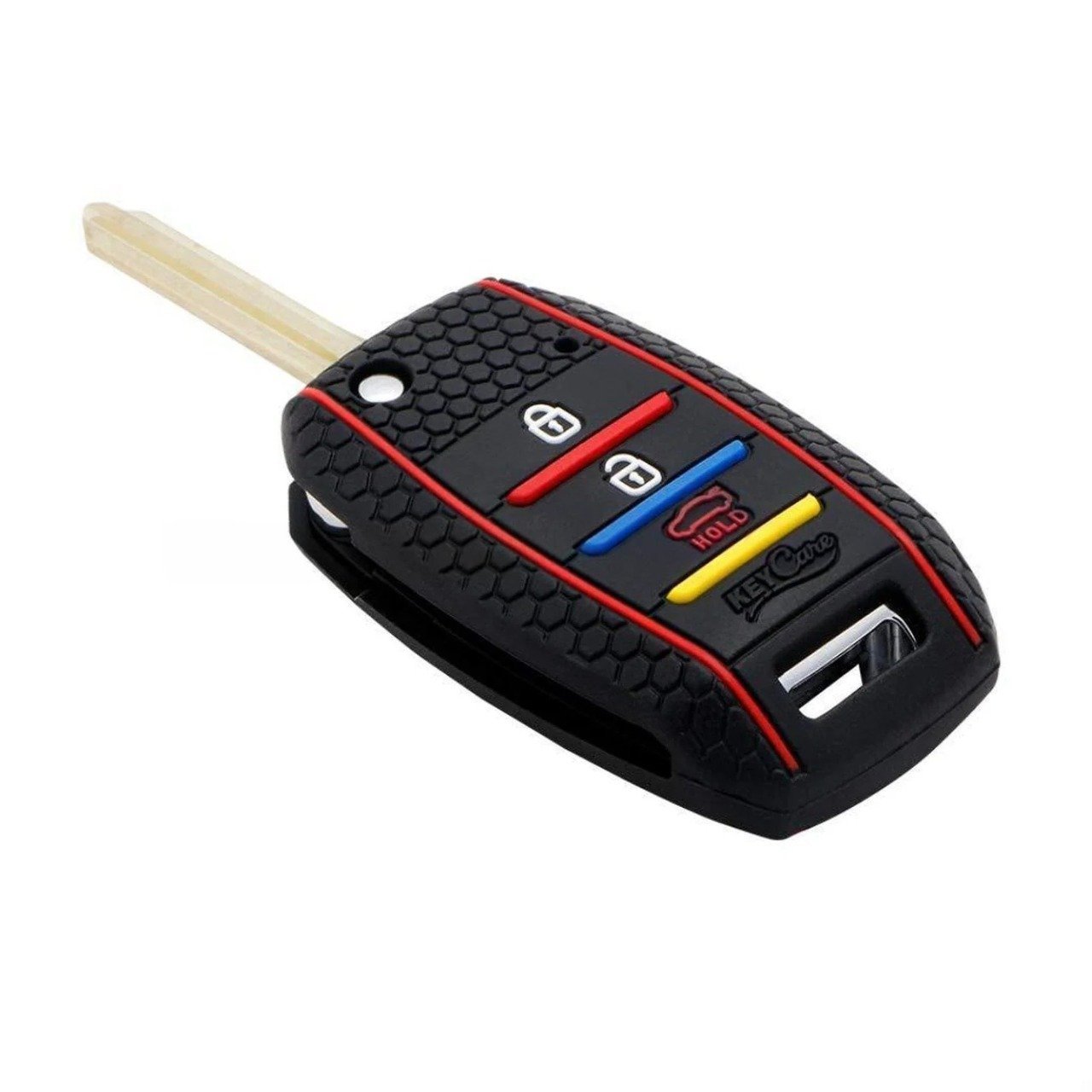 • Custom-fit silicone flip key cover for Kia Seltos (1st GEN) 3-button key • Protects key from scratches, dust, and light impacts • Made from high-quality, flexible silicone for a snug fit • Non-slip texture enhances grip and usability • Precisely cut for full access to all flip key buttons • Easy to install, lightweight, and pocket-friendly design