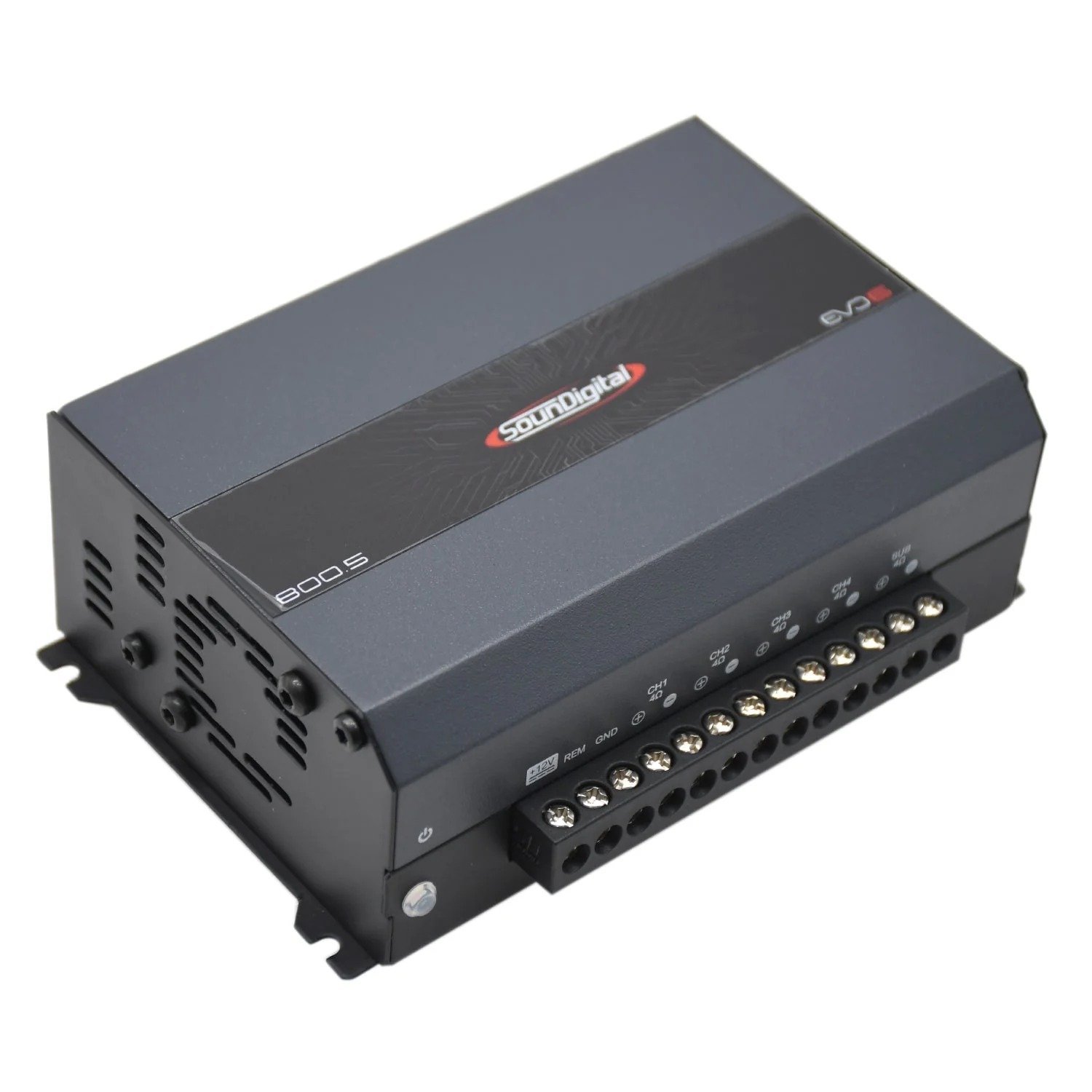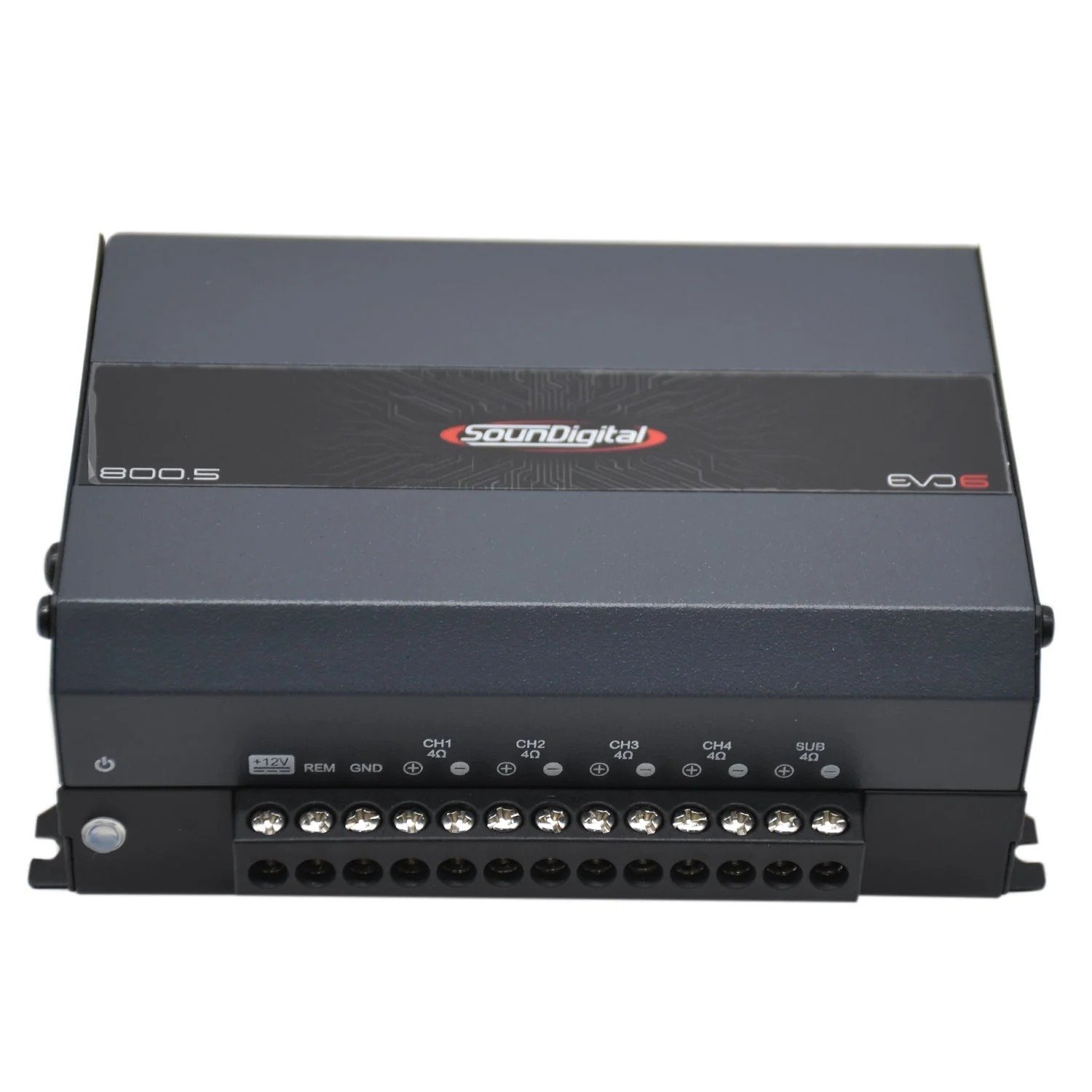 The SOUNDIGITAL 800.5 EVO6 is a high-performance 5-channel amplifier built for car audio enthusiasts who want a complete solution in a compact chassis. This amp can power four full-range speakers and a subwoofer simultaneously, making it perfect for space-saving, full-system installations.