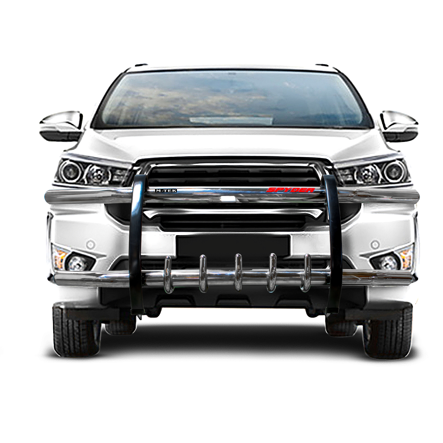 - Distinct Spyder Styling: The Spyder Edition front protector for Innova Crysta features an angular, sporty frame with sharp edges that give your vehicle an aggressive and premium SUV stance.