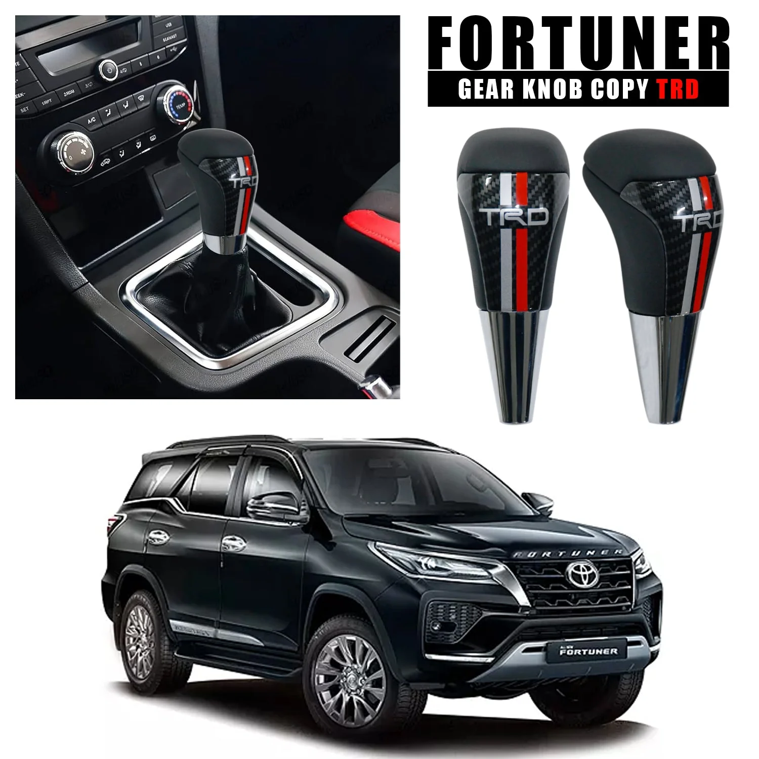 - TRD-Inspired Styling: Add a bold motorsport look to your Fortuner’s interior with this gear knob featuring Toyota Racing Development (TRD) badging and performance styling cues.